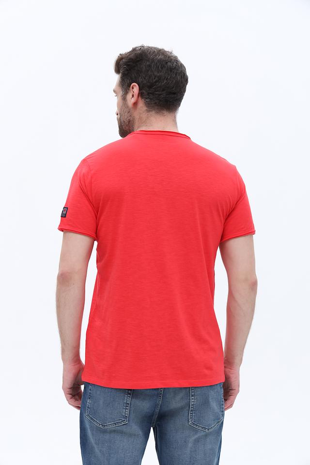 Яркий красный цвет делает эту футболку отличным акцентом в вашем образе. Минималистичный дизайн без лишних деталей позволяет сочетать ее с различными элементами гардероба – от джинсов и шорт до пиджаков и кардиганов.