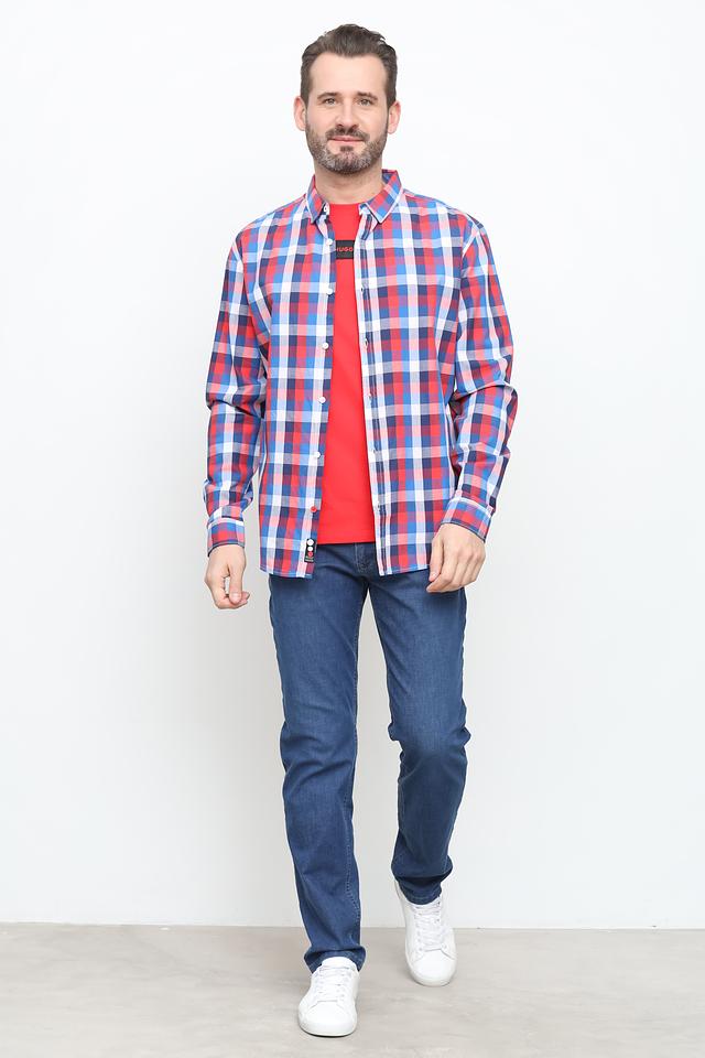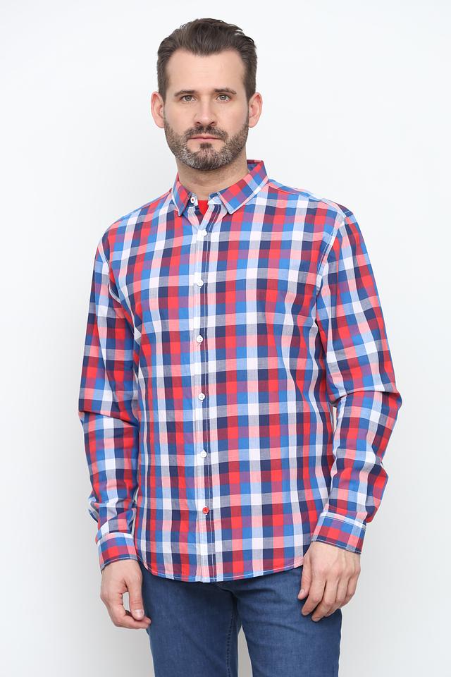 Мужская рубашка Time Zone красного цвета в классическую клетку – стильное и универсальное решение для повседневного образа. Изготовлена из 100% хлопка, обеспечивающего комфорт и воздухопроницаемость. Состав: хлопок 100%