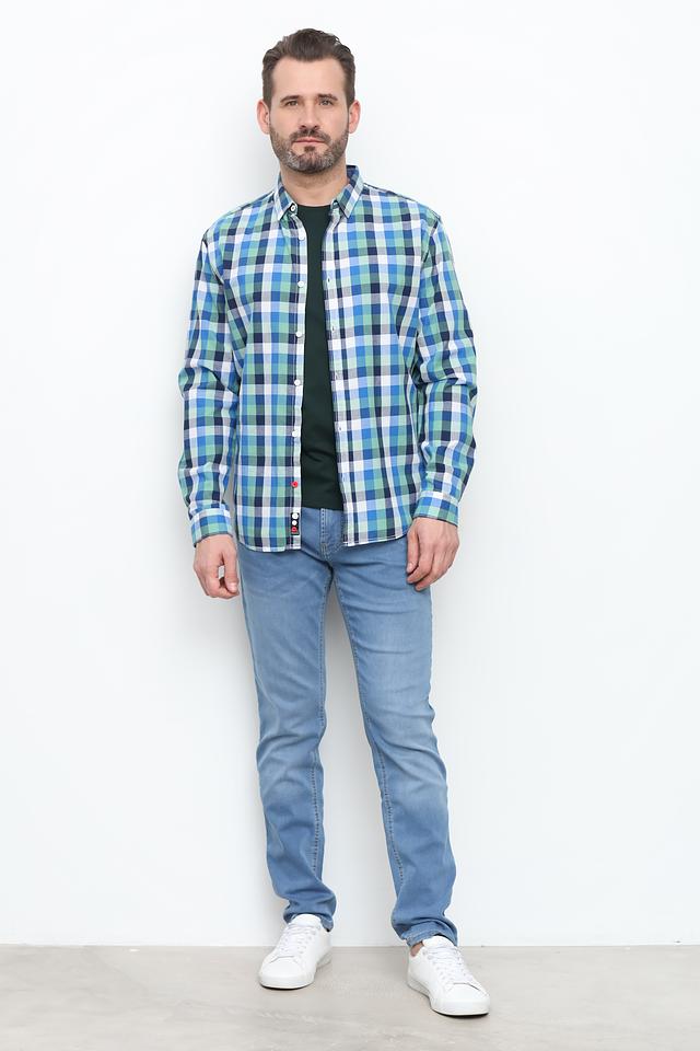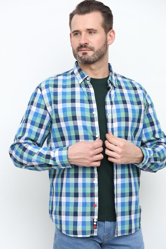 Эта рубашка от Time Zone станет незаменимой частью вашего гардероба. Выполнена в клетку, сочетающую в себе оттенки голубого, зелёного и белого, что придает ей стильный и универсальный вид.