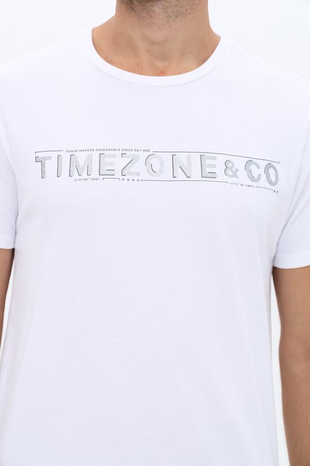 Эта белая футболка от Time Zone станет отличным дополнением к вашему образу. Классический крой и круглый вырез делают ее универсальной для различных стилей.