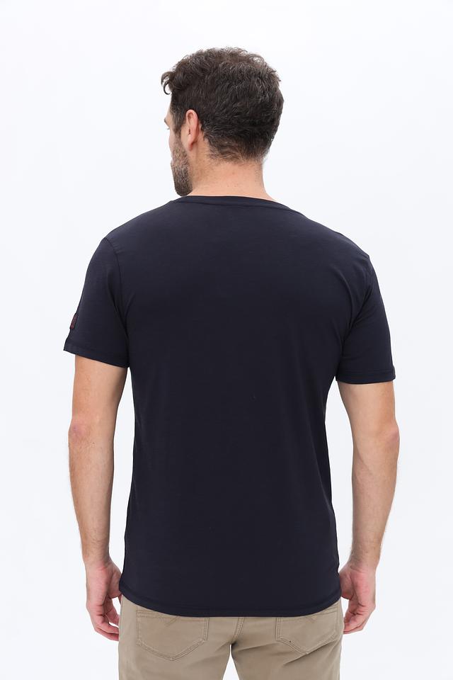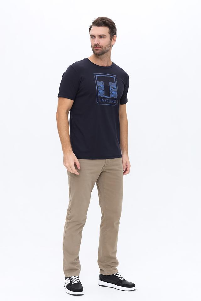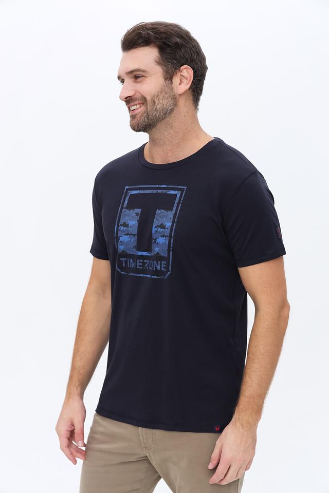Мужская футболка Time Zone тёмно-синего цвета с оригинальным принтом в виде логотипа бренда. Изготовлена из 100% хлопка, обеспечивающего комфорт и воздухопроницаемость. Состав: хлопок 100%