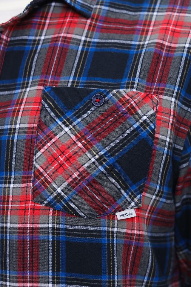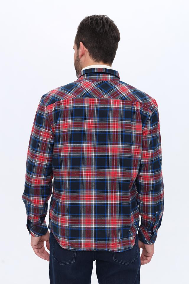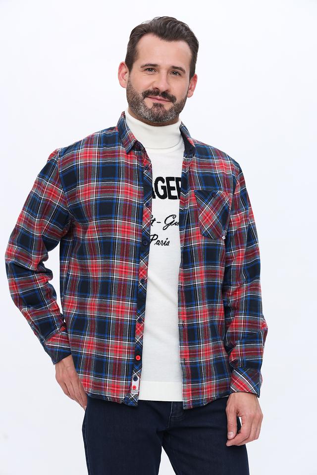 Основной цвет рубашки – красный, дополненный синим и белым в клетчатом узоре. Ткань состоит из 97% хлопка и 3% лайкры, что обеспечивает комфорт, воздухопроницаемость и небольшую эластичность.