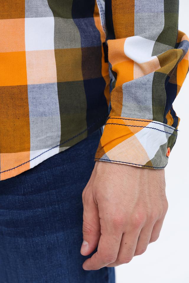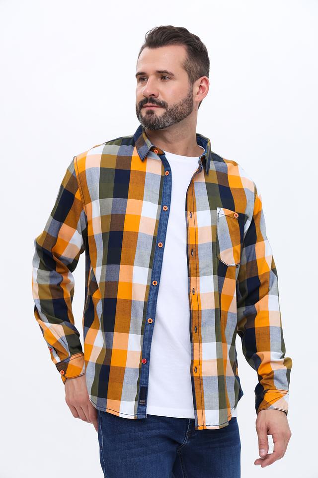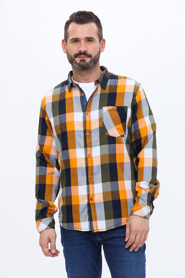 Мужская рубашка Time Zone выполнена в классической клетке оранжево-зелёных оттенков. Модель с длинным рукавом и удобным кроем станет отличным дополнением к вашему гардеробу. Состав: полиэстер 41%, вискоза 37%, хлопок 22%