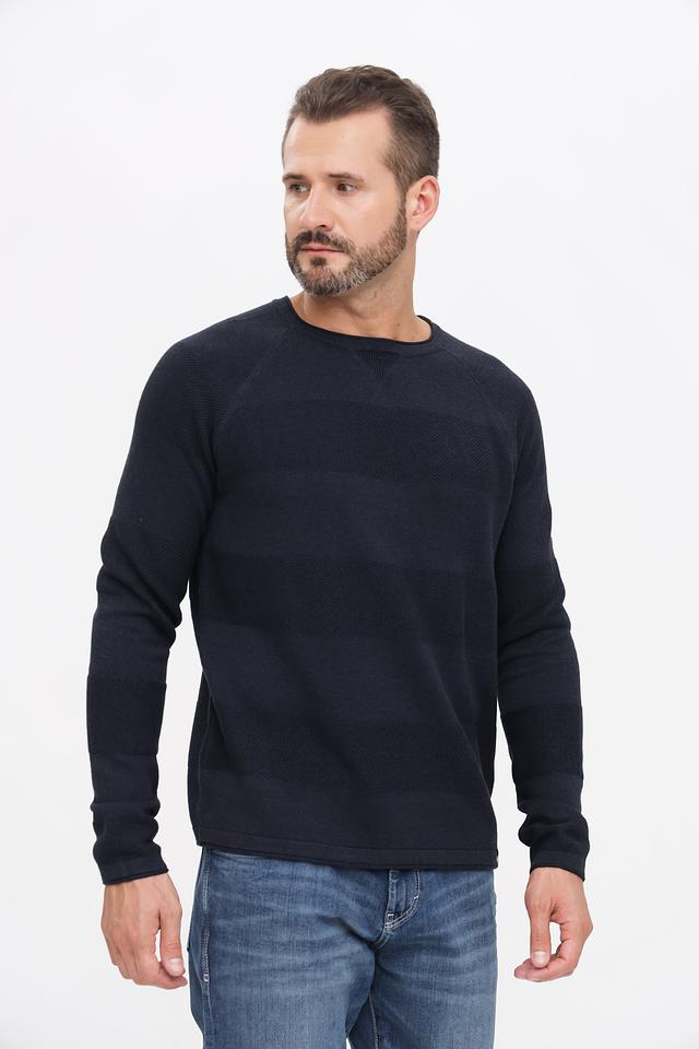Этот мужской джемпер от Time Zone станет отличным дополнением к вашему гардеробу. Выполненный в тёмно-синем цвете, он легко сочетается с различными стилями одежды.