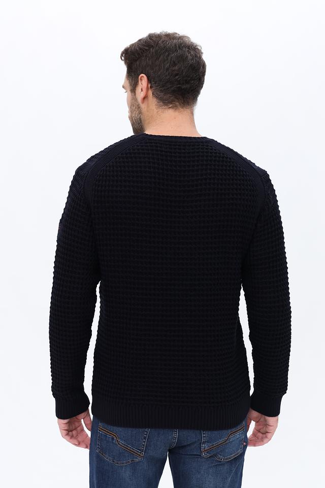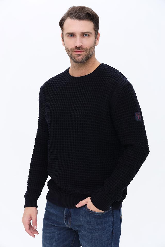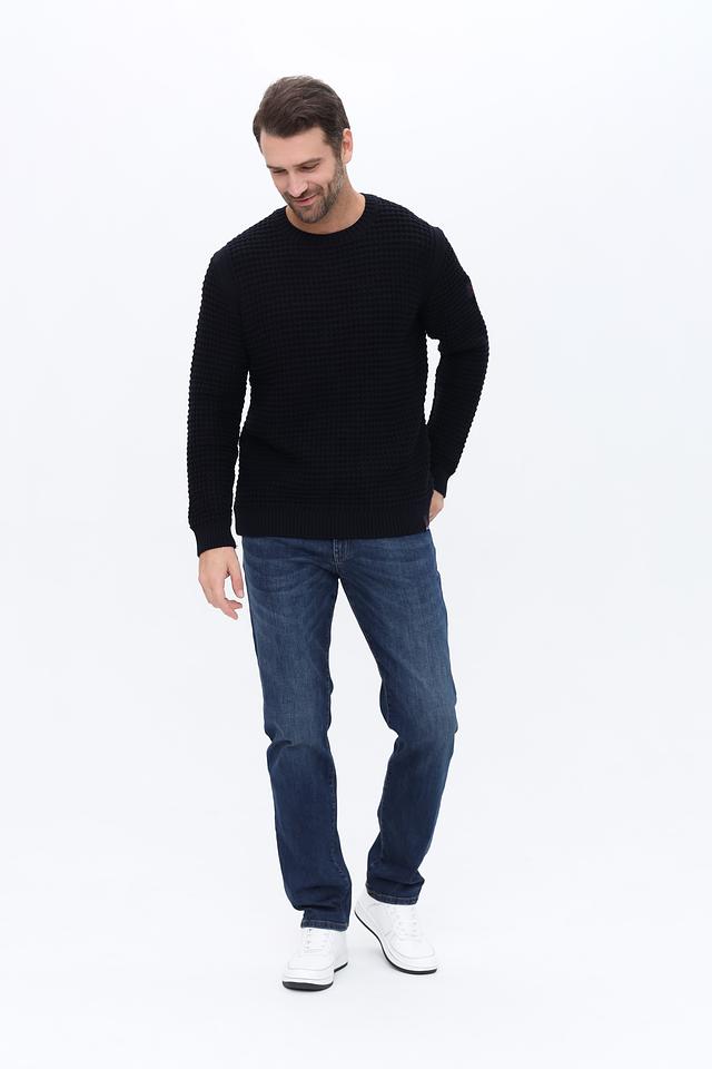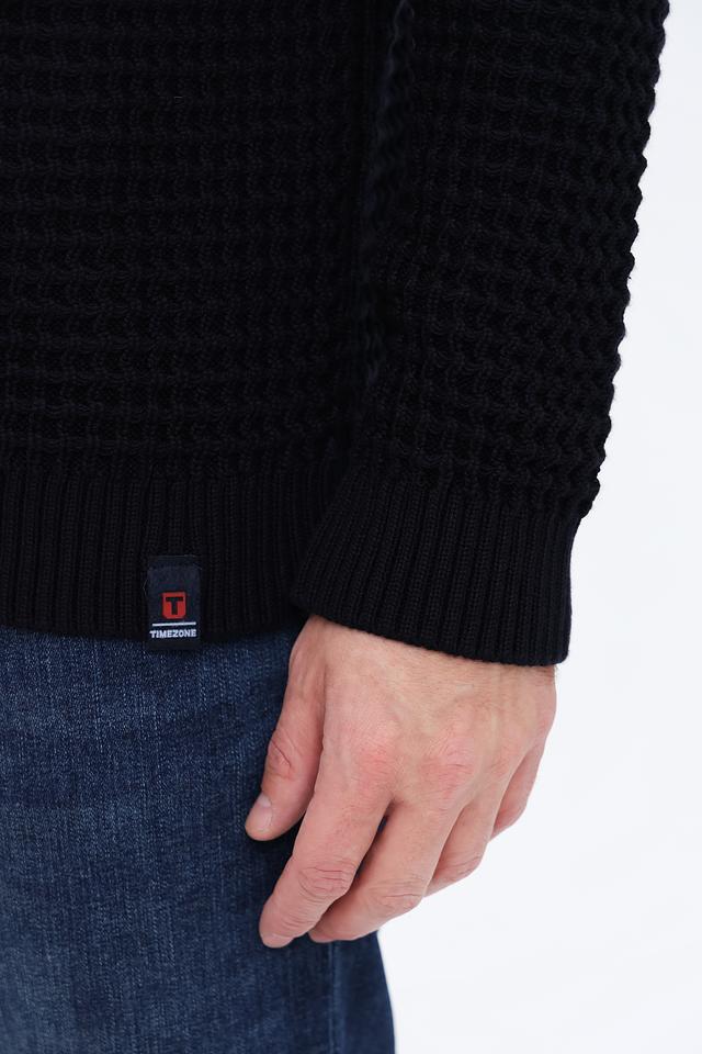 Мужской джемпер Time Zone чёрного цвета с текстурной вязкой. Изготовлен из хлопка с добавлением полиакрила для мягкости и износостойкости. Стильный и комфортный выбор для повседневного гардероба. Состав: хлопок 50%, полиакрил 50%