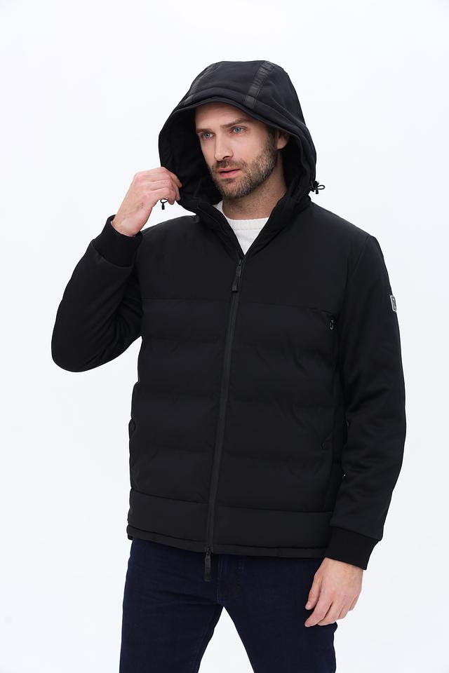 Модель имеет стеганую фактуру на передней части и гладкую на рукавах и спине, что придает ей современный вид. Капюшон регулируется шнурками, обеспечивая надежную защиту от непогоды. Застежка-молния позволяет быстро и удобно надевать и снимать куртку.