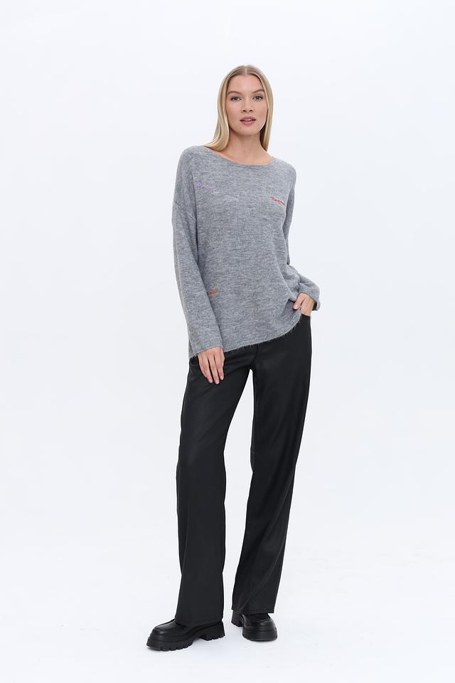 Пуловер имеет свободный крой, который не сковывает движений и позволяет создать расслабленный образ. Серый цвет легко сочетается с другими элементами одежды, а яркая вышивка добавляет индивидуальности.