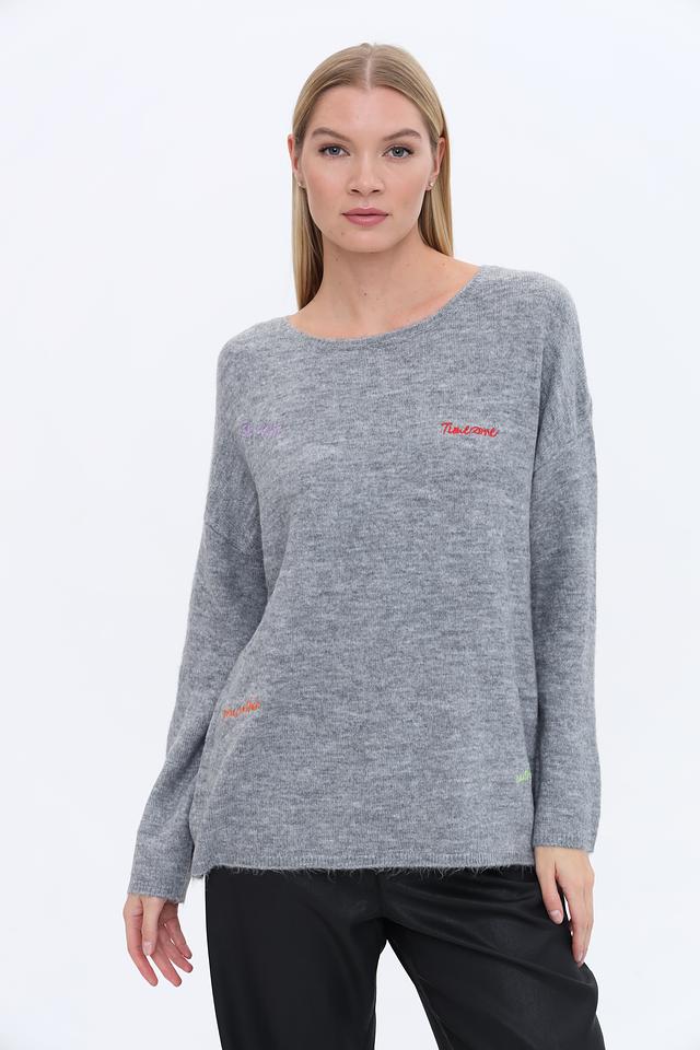 Пуловер Time Zone с вышивкой серый