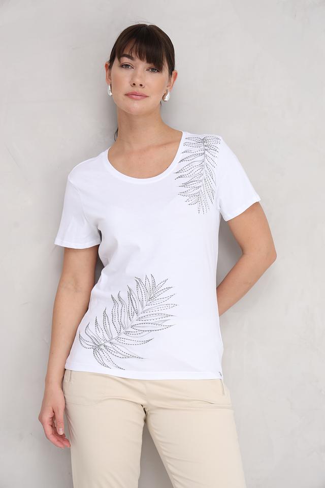 Белая футболка Time Zone с оригинальным принтом в виде листьев — стильное и комфортное решение для повседневного образа. Изготовлена из 100% хлопка, обеспечивающего приятные ощущения на коже. Состав: хлопок 100%