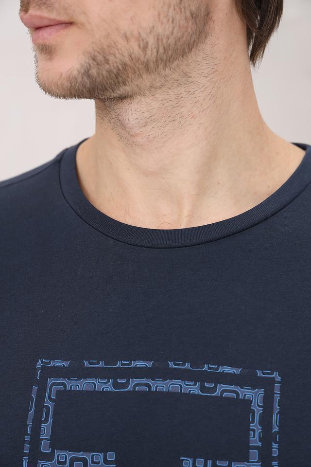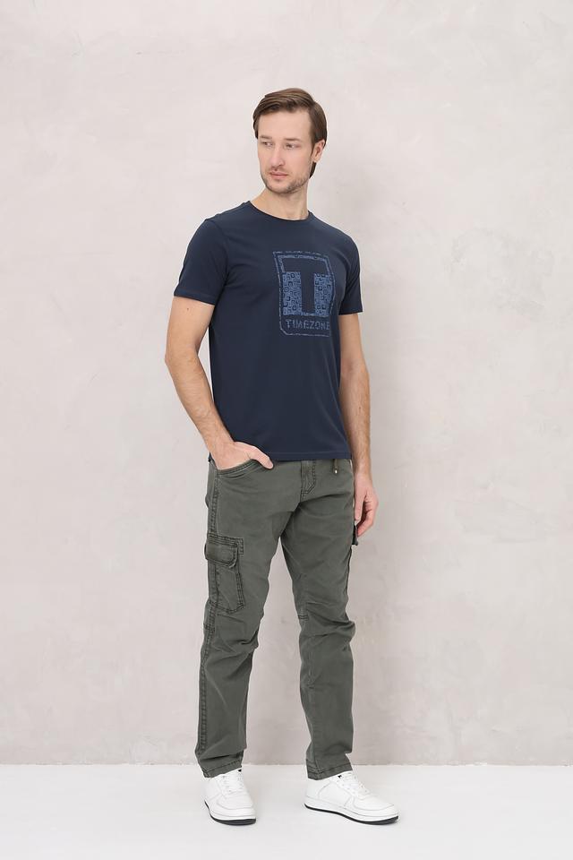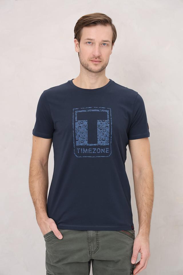 Мужская футболка Time Zone тёмно-синего цвета с оригинальным графическим принтом на груди. Изготовлена из 100% хлопка, обеспечивающего комфорт и воздухопроницаемость. Отличный выбор для повседневного образа. Состав: хлопок 100%