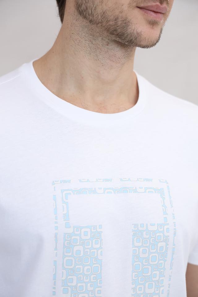 Особенностью данной модели является стильный принт на груди, выполненный в светло-голубых тонах. Принт добавляет футболке индивидуальности и делает ее более интересной.