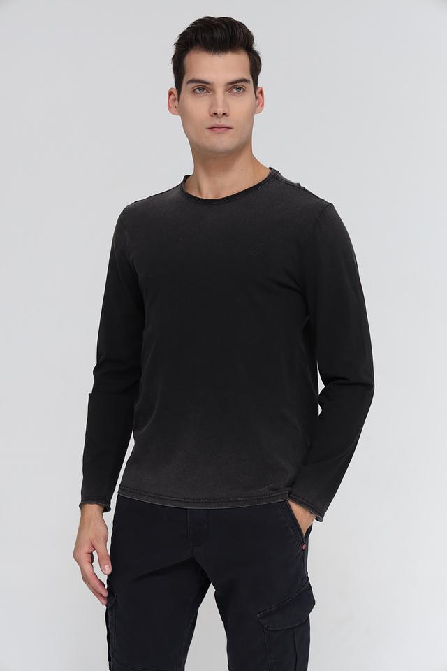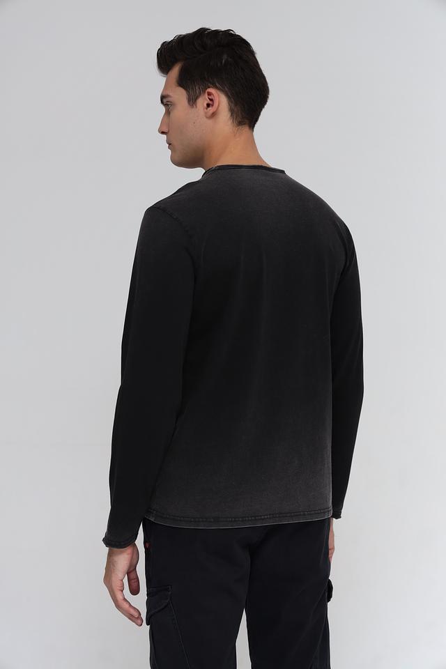 Эта мужская футболка от Time Zone выполнена в черном цвете с эффектом выцветания, придающим ей винтажный вид. Футболка имеет длинный рукав и круглый вырез горловины.