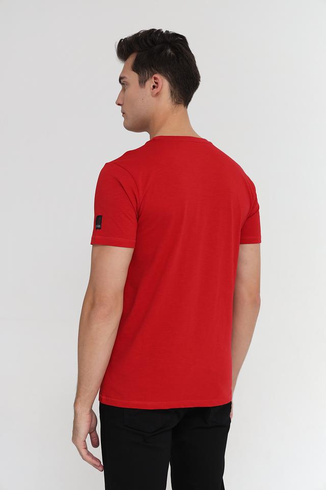 Мужская футболка Time Zone красного цвета с оригинальным графическим принтом. Изготовлена из 100% хлопка, обеспечивающего комфорт и воздухопроницаемость. Состав: хлопок 100%