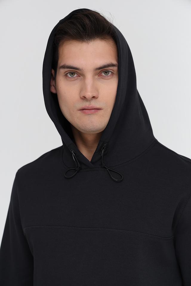 Толстовка имеет удобный капюшон со шнурками для регулировки, а также вместительный кенгуру-карман. Прямой крой обеспечивает свободу движений, а эластан в составе ткани добавляет эластичности и улучшает посадку по фигуре.