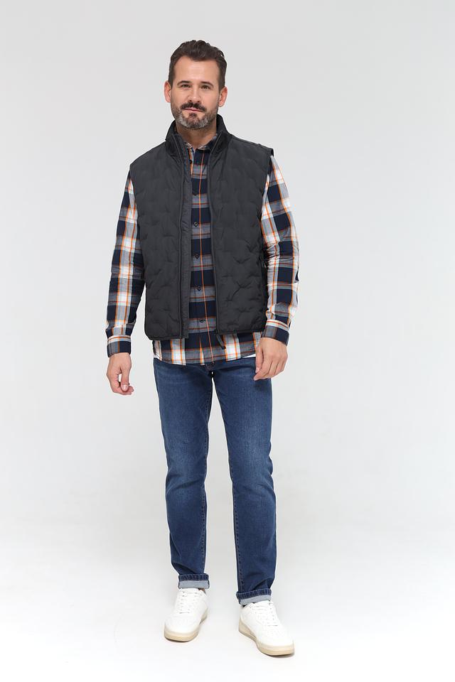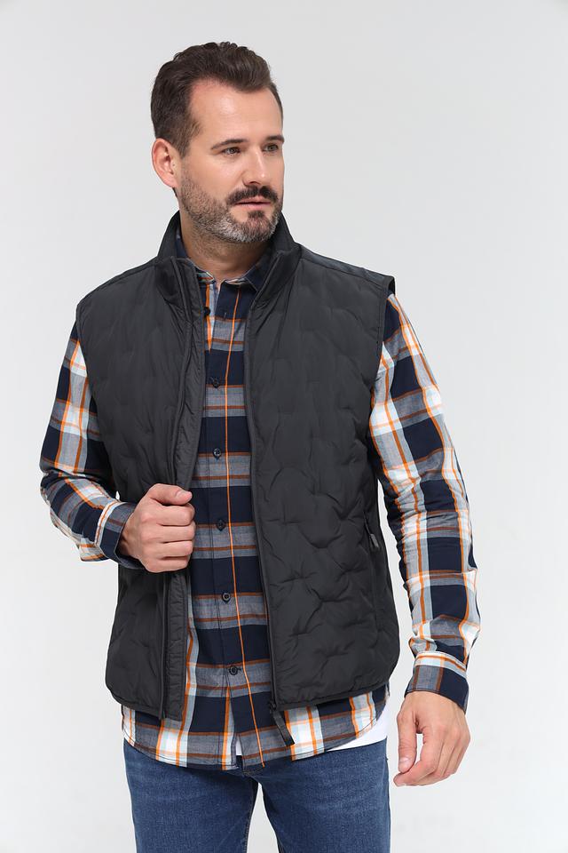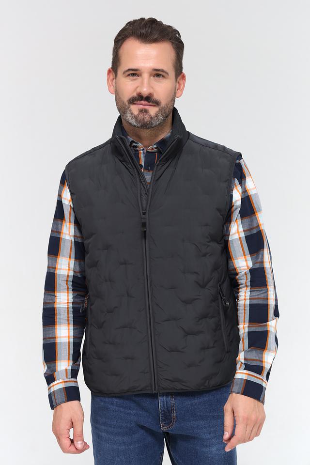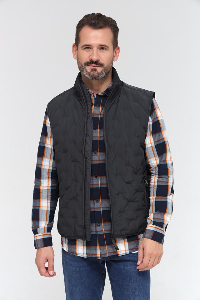 Жилет имеет стеганую фактуру, которая придает ему современный вид. Модель выполнена из 100% полиэстера, что обеспечивает легкость, износостойкость и простоту в уходе.