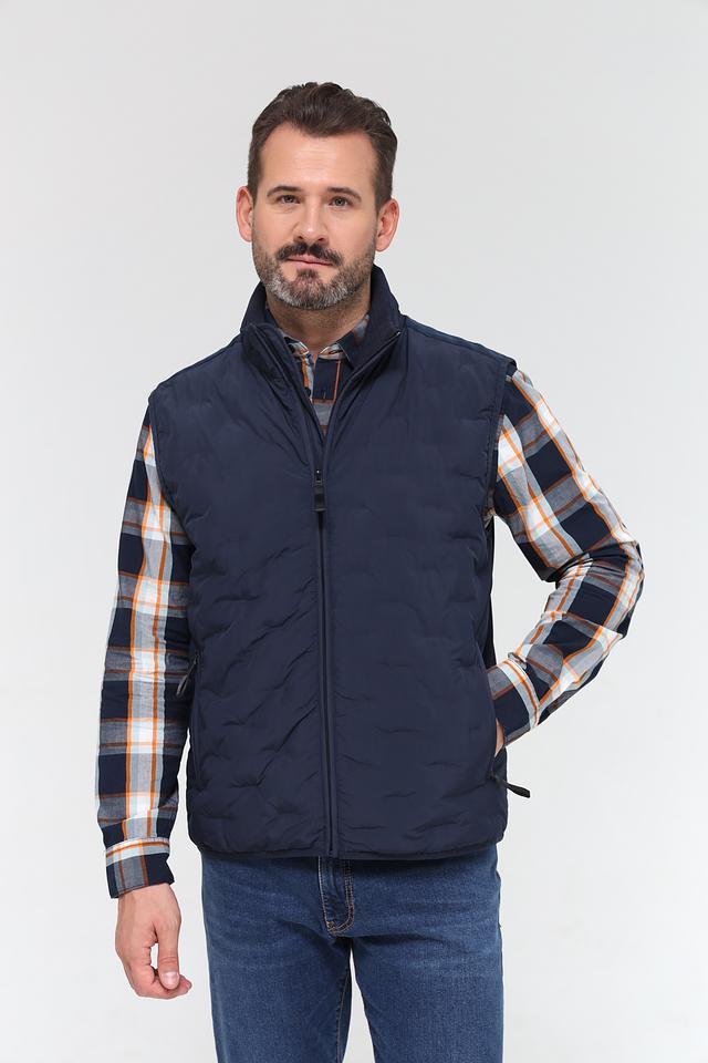 Мужской жилет Time Zone синего цвета станет отличным дополнением к вашему гардеробу. Эта модель идеально подходит для создания многослойных образов в прохладную погоду.