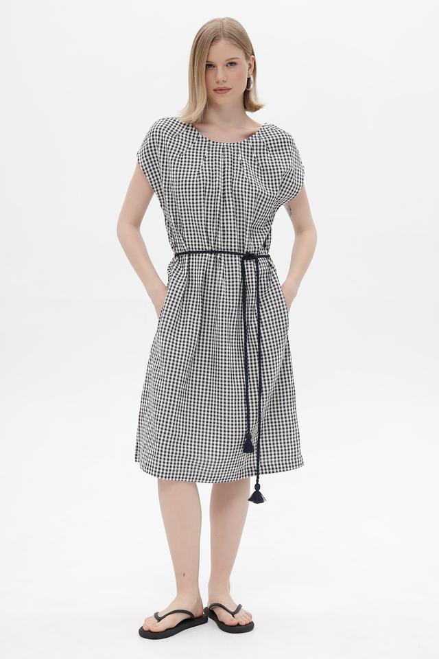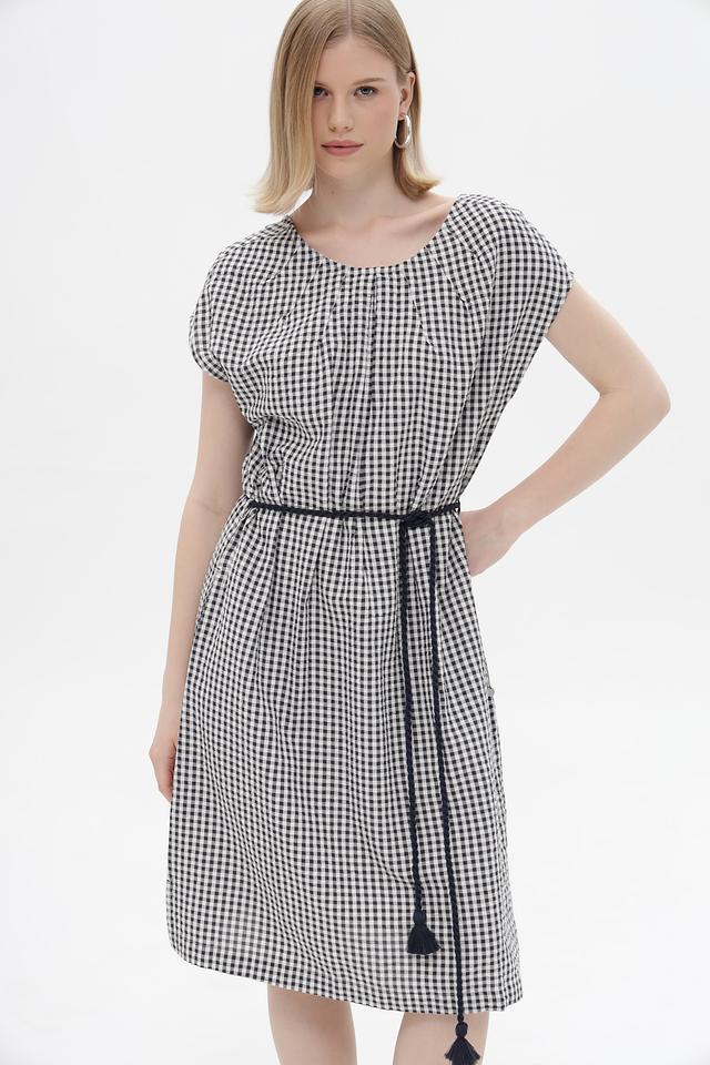 Это платье от Time Zone выполнено в классическом стиле и станет отличным дополнением к вашему гардеробу. Основной цвет – белый, дополненный чёрным клетчатым принтом.