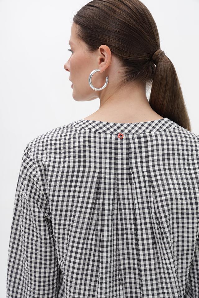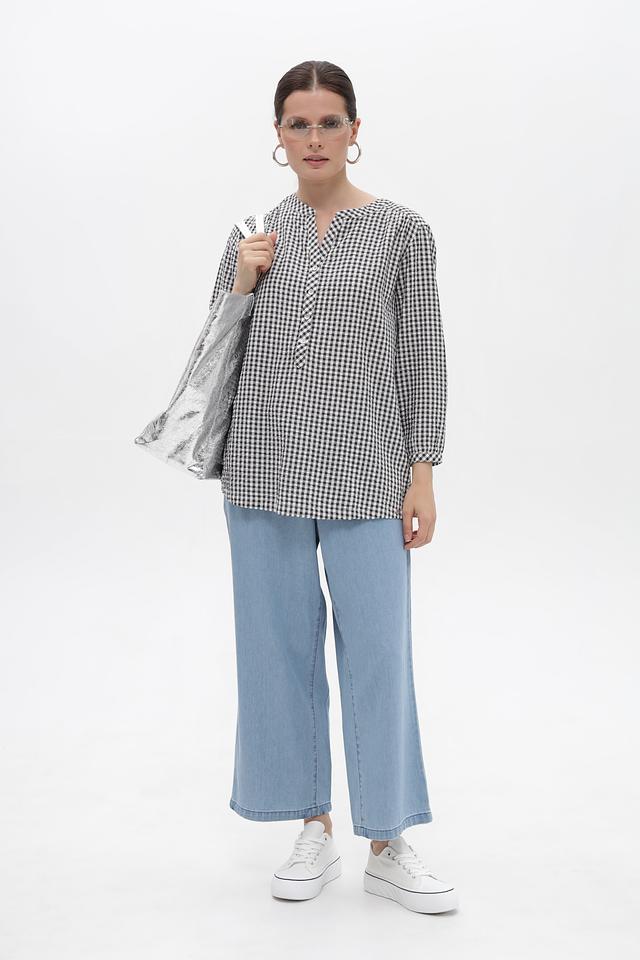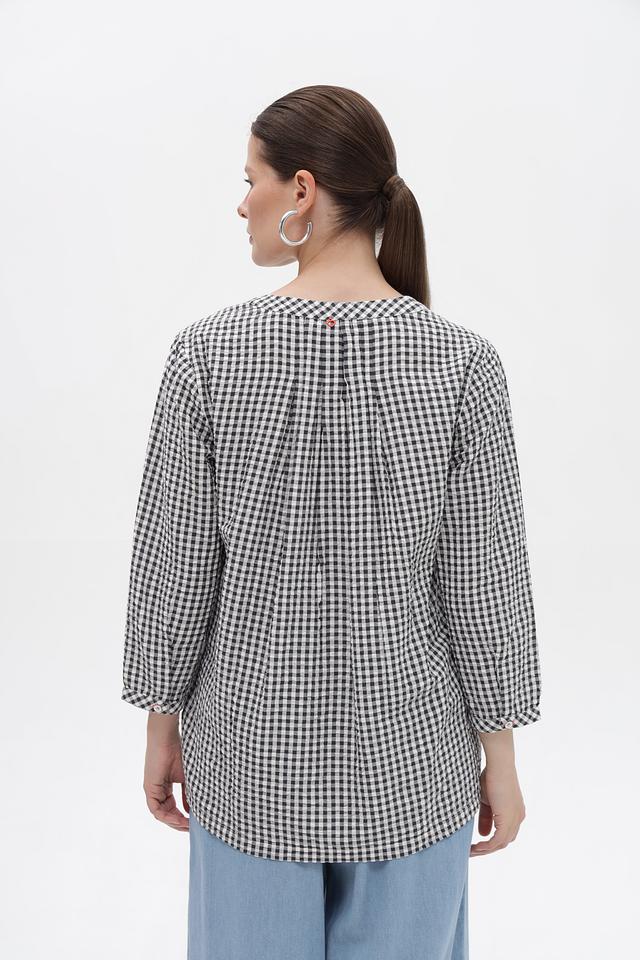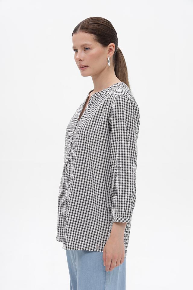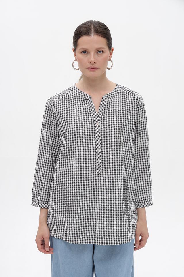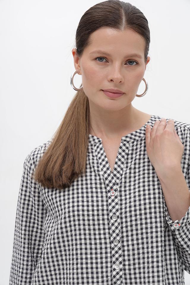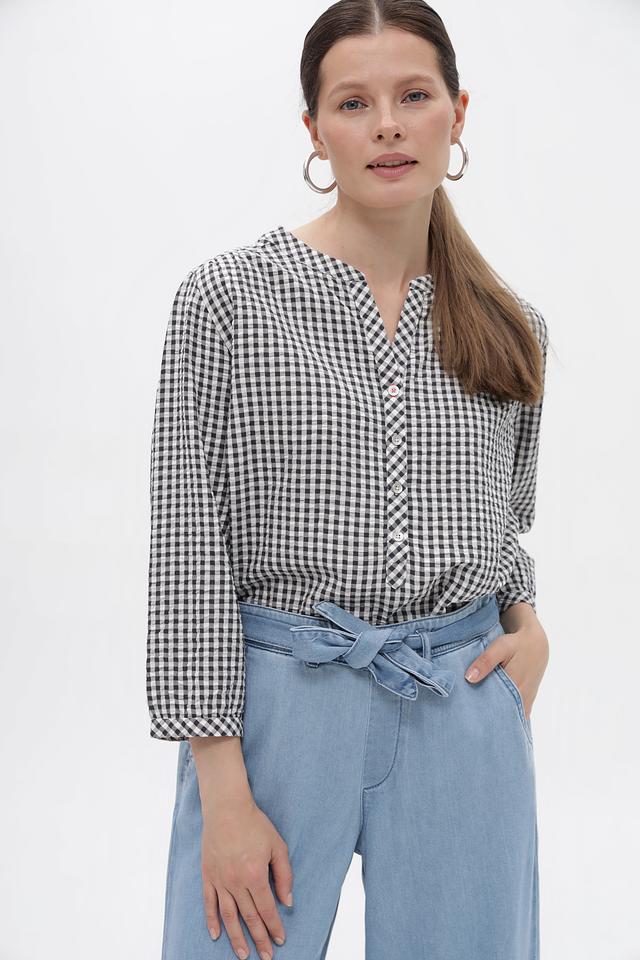 Эта блузка от Time Zone станет отличным дополнением к вашему гардеробу. Она выполнена в классическую чёрно-белую клетку, которая всегда актуальна и легко сочетается с другими вещами.