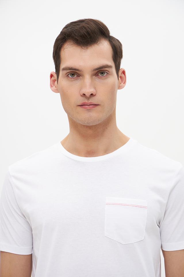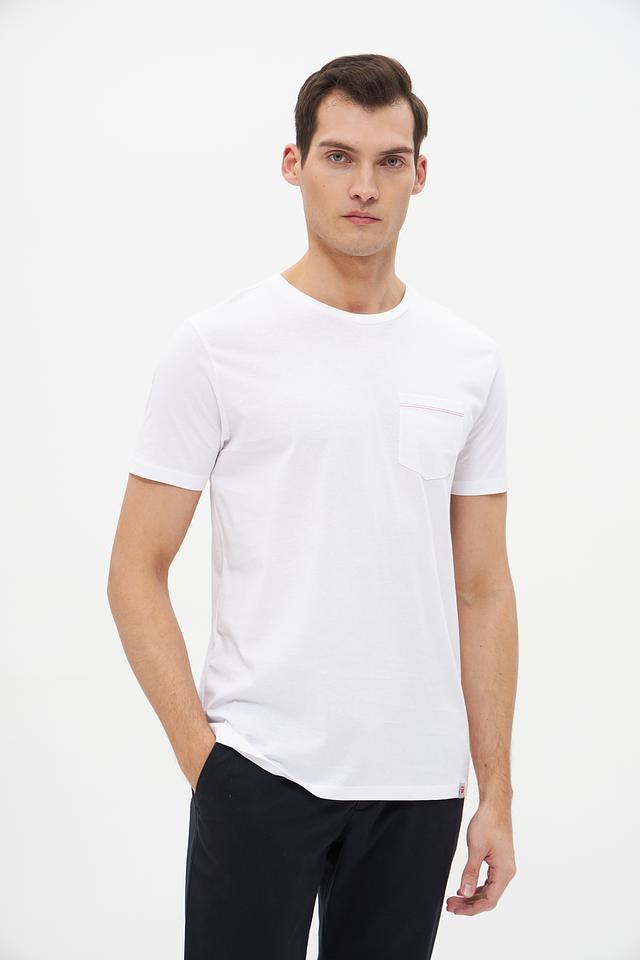 Белая футболка Time Zone из 100% хлопка с коротким рукавом и накладным карманом. Классический крой и мягкий материал обеспечивают комфорт в повседневной носке. Состав: хлопок 100%