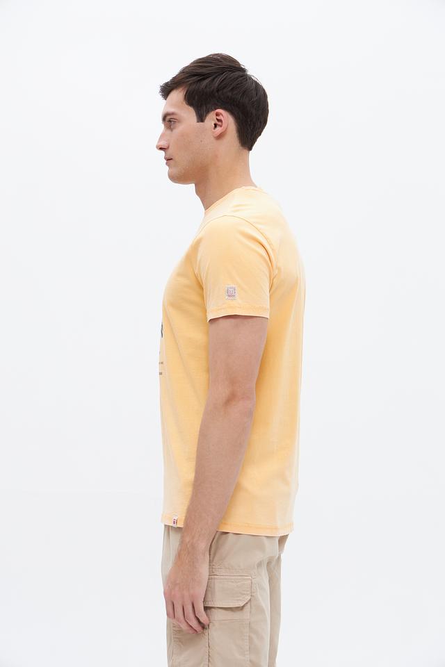 Мужская футболка Time Zone светло-жёлтого цвета с ярким принтом. Изготовлена из 100% хлопка, обеспечивающего комфорт и воздухопроницаемость. Отличный выбор для повседневного образа. Состав: хлопок 100%