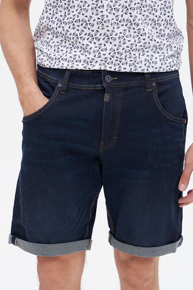 Шорты имеют классический синий цвет и стандартный крой, который подойдет для большинства типов фигуры. Застежка на пуговицу и функциональные карманы делают их практичными и удобными в повседневной носке.