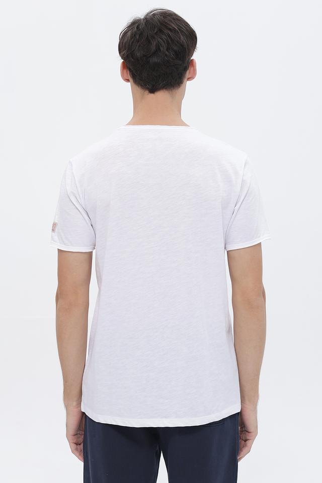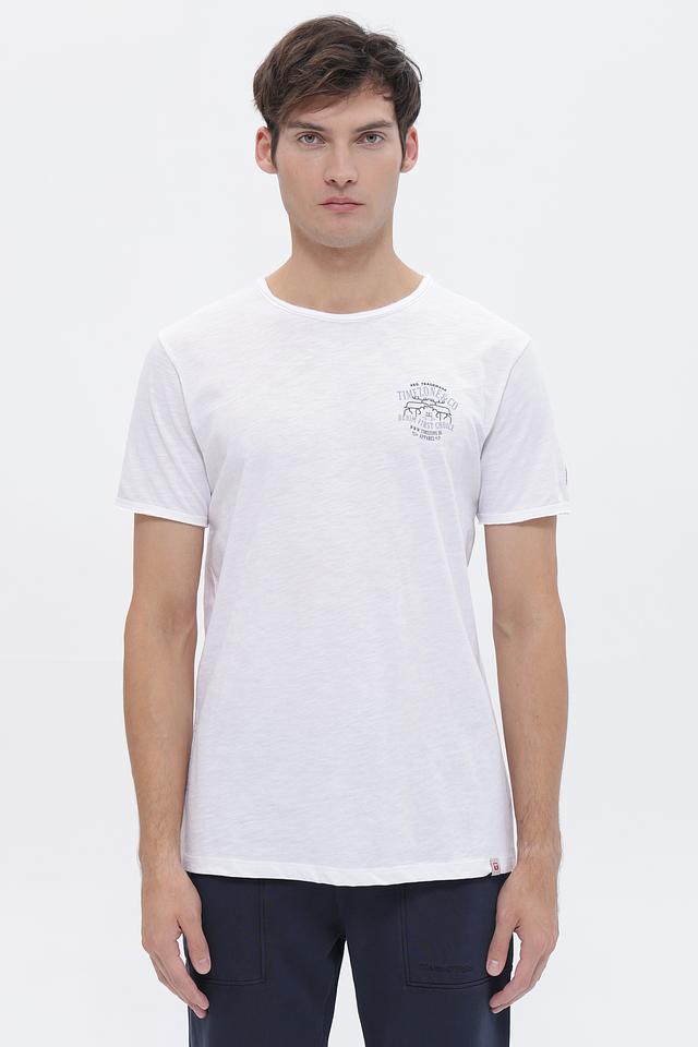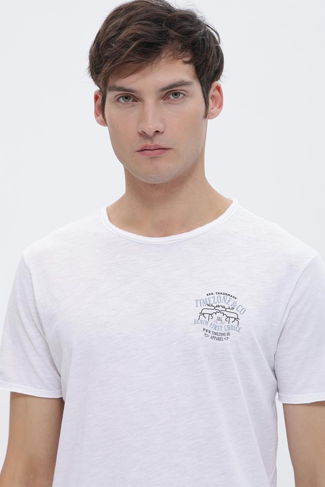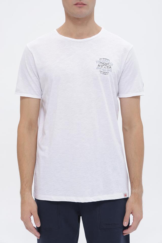 Белая футболка Time Zone с круглым вырезом и оригинальным принтом на груди. Изготовлена из 100% хлопка, обеспечивающего комфорт и воздухопроницаемость. Отличный выбор для повседневного образа. Состав: хлопок 100%