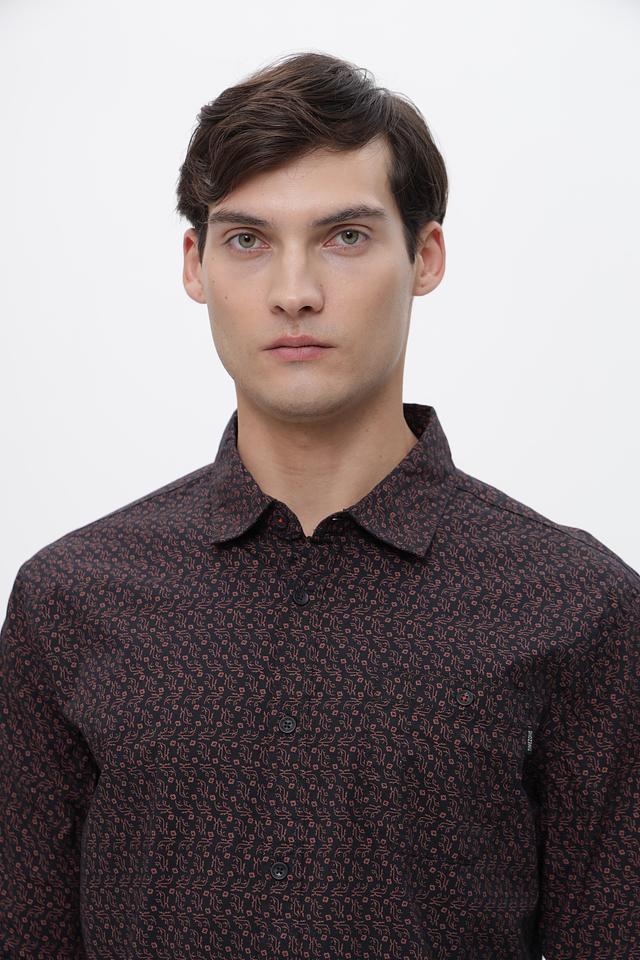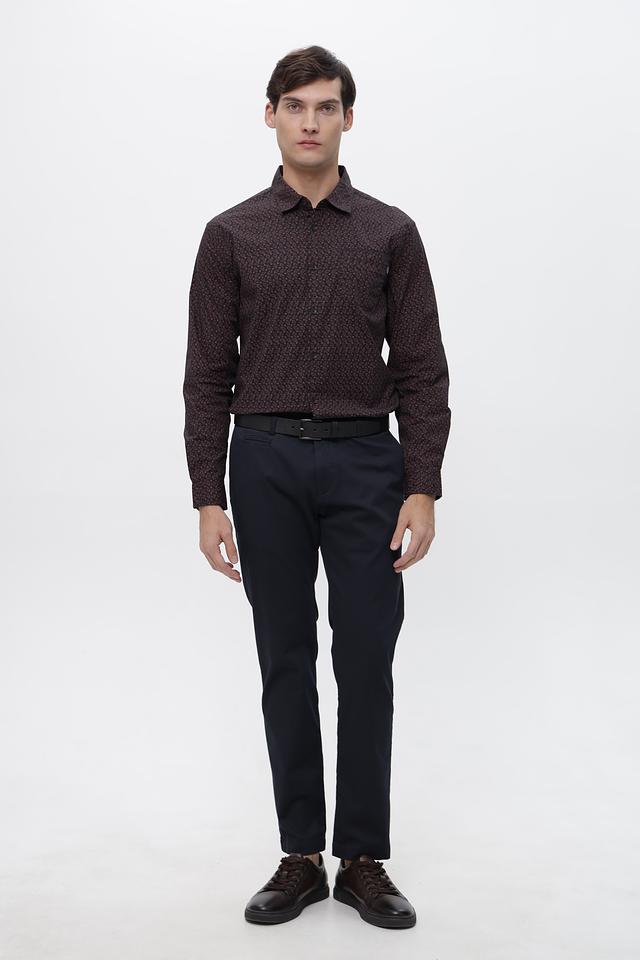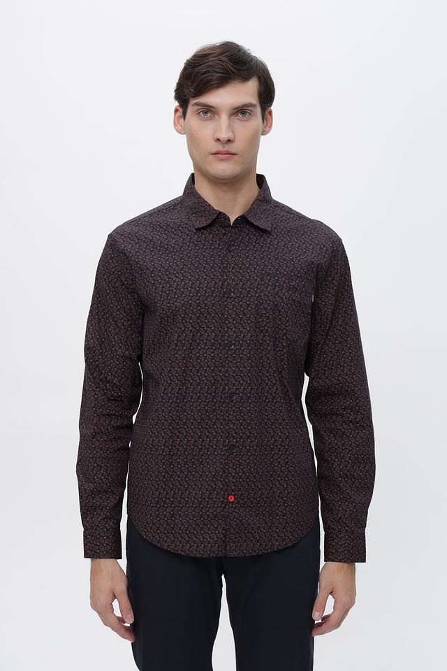 Мужская рубашка Time Zone бордового цвета с оригинальным принтом. Изготовлена из хлопка с добавлением эластана для комфорта и лучшей посадки. Состав: хлопок 97%, эластан 3%