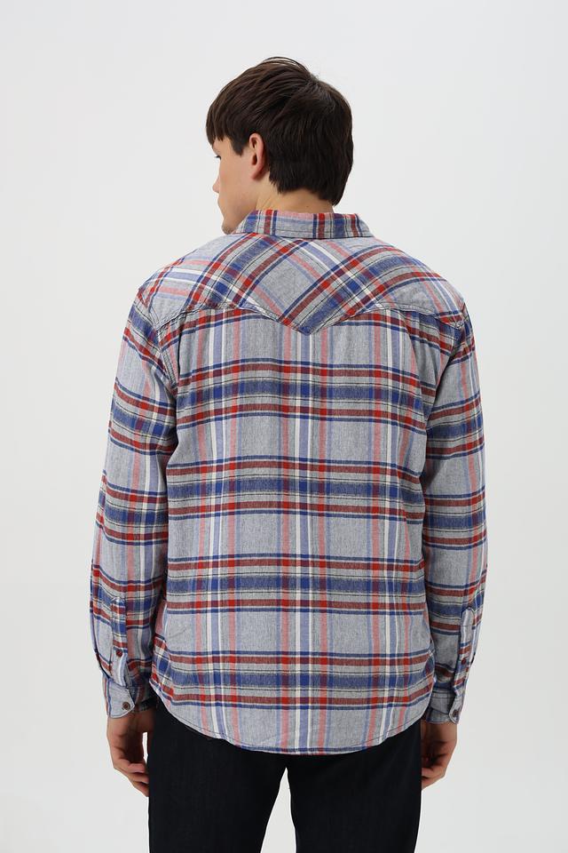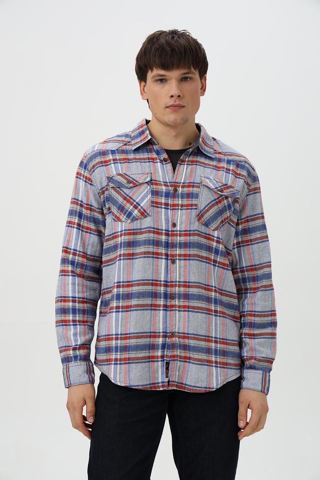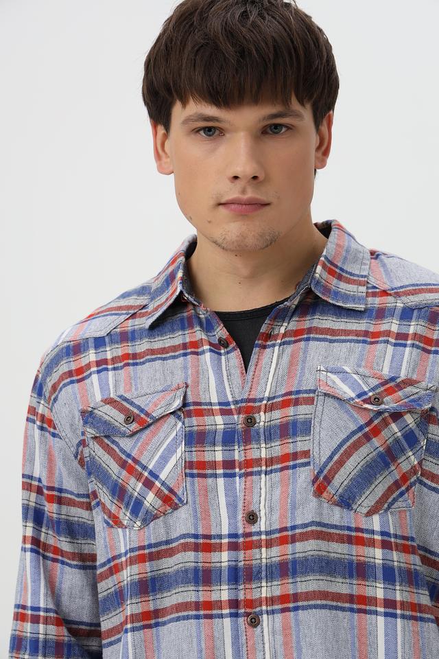 Эта рубашка от Time Zone станет отличным дополнением к вашему гардеробу. Выполнена в синей цветовой гамме с ярким клетчатым принтом, сочетающим в себе оттенки красного и голубого.