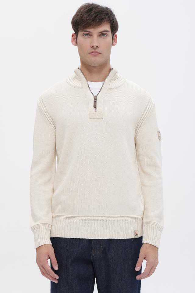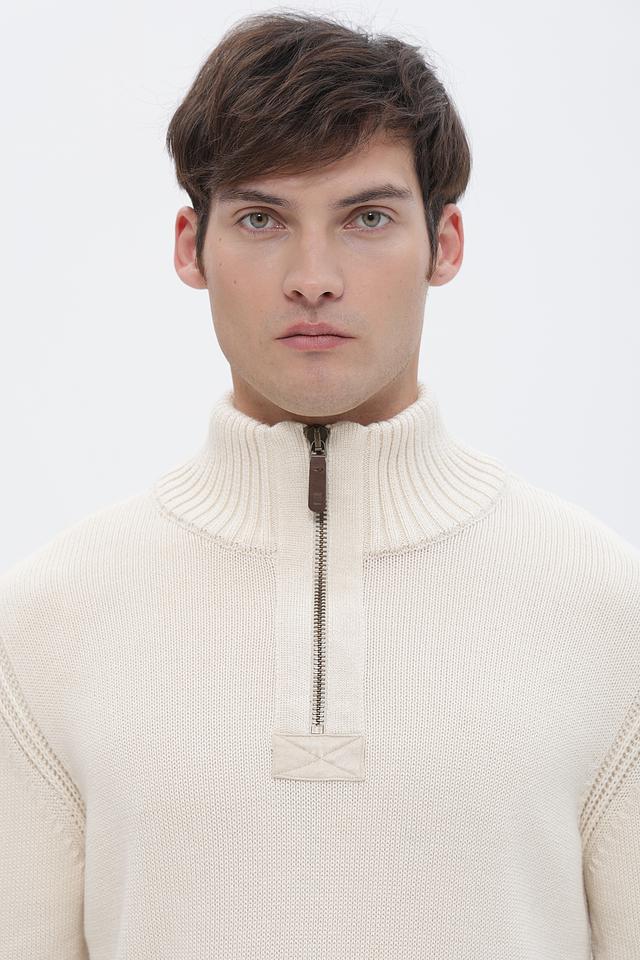 Бежевый джемпер от Time Zone с короткой молнией на воротнике – стильное и комфортное решение для повседневного гардероба. Изготовлен из мягкого сочетания хлопка и полиакрила, обеспечивающего удобство в носке. Состав: хлопок 52%, полиакрил 48%