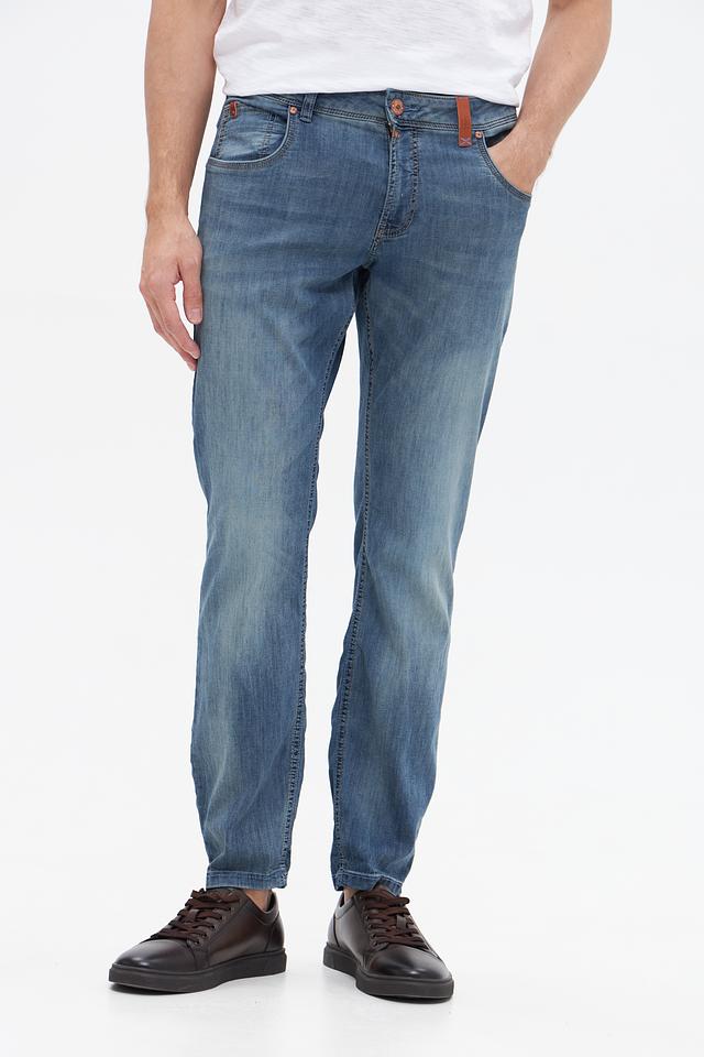 Представляем вашему вниманию классические мужские джинсы от бренда Time Zone. Модель выполнена в синем цвете с эффектом лёгкого выцветания, что придаёт ей стильный и современный вид.
