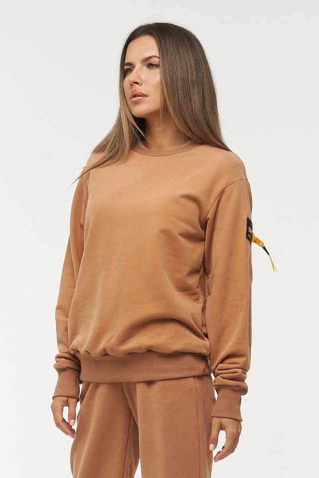 Толстовка BE YOU выполнена в приятном коричневом цвете и станет отличным дополнением к вашему гардеробу. Модель имеет свободный крой оверсайз, который обеспечивает комфорт и свободу движений. Классический круглый вырез и длинные рукава с эластичными манжетами создают удобную посадку.