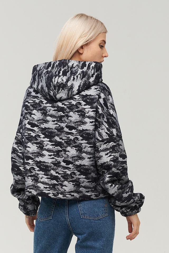 Женская толстовка BE YOU серого цвета с принтом "камуфляж" – удобная и стильная модель для повседневной носки. Изготовлена из мягкого хлопка с добавлением эластана для комфортной посадки и свободы движений. Состав: хлопок 95%, эластан 5%