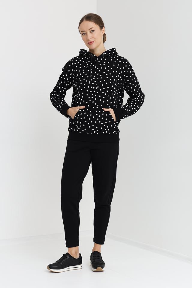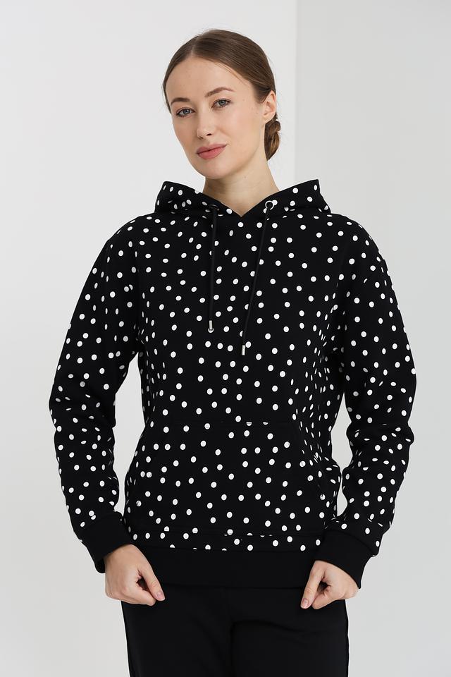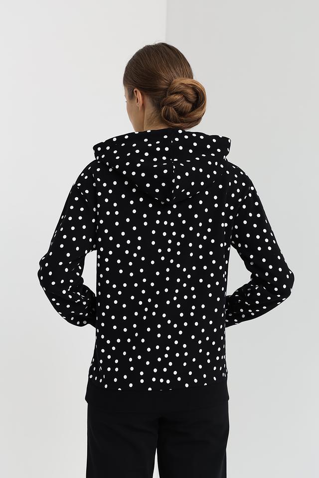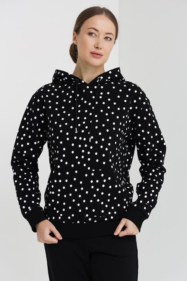 Женская толстовка Pezzo чёрного цвета с белым горохом – стильная и комфортная модель на каждый день. Изготовлена из 100% хлопка, обеспечивающего приятные ощущения при носке. Состав: хлопок 100%