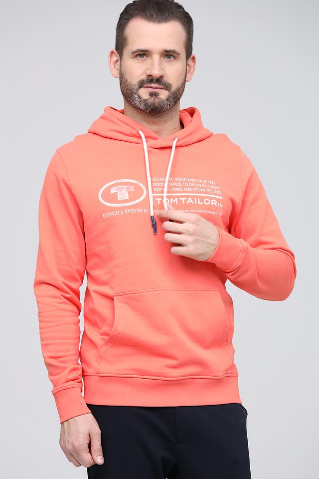 Мужская толстовка Tom Tailor персикового цвета с капюшоном и логотипом на груди. Изготовлена из мягкого хлопка для комфорта и тепла. Отличный выбор для повседневного образа. Состав: хлопок 100%