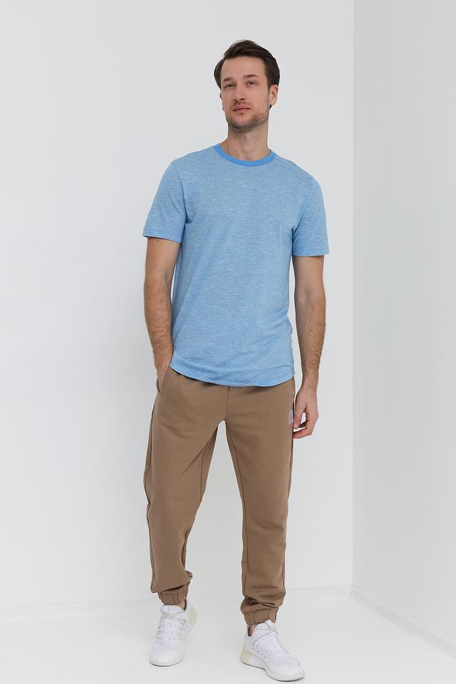 Футболка изготовлена из смеси хлопка (67%) и полиэстера (33%), что делает ее приятной к телу, дышащей и износостойкой. Круглый вырез горловины дополнен отделкой в тон изделия.