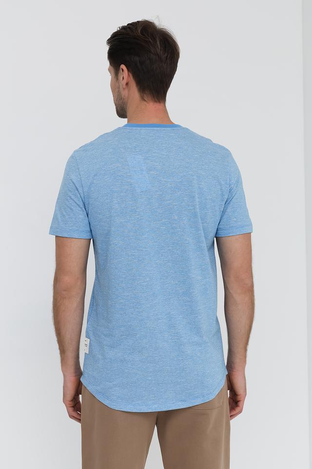 Мужская футболка от бренда Tom Tailor выполнена в голубом цвете с полосатым рисунком. Модель имеет прямой крой и короткие рукава, что обеспечивает комфорт в повседневной носке.