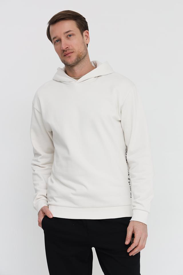 Кремовая толстовка от Tom Tailor с капюшоном и надписью на рукаве. Изготовлена из мягкого хлопка, обеспечивающего комфорт в повседневной носке. Стильный и лаконичный дизайн. Состав: хлопок 100%