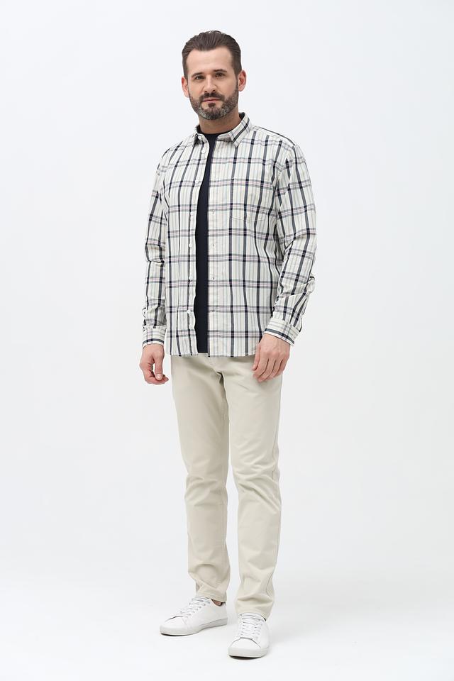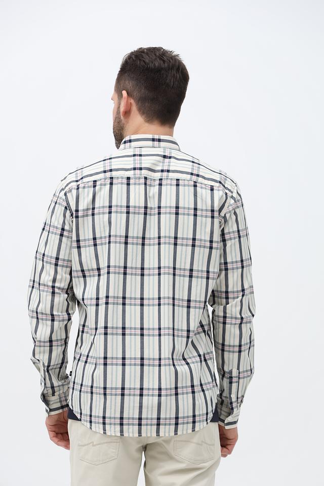 Мужская рубашка Tom Tailor светло-бежевого цвета в классическую клетку. Изготовлена из 100% хлопка, обеспечивающего комфорт и воздухопроницаемость. Отличный выбор для создания повседневного образа. Состав: хлопок 100%