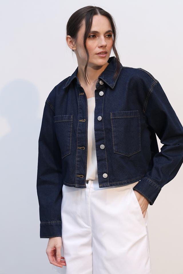 Классический джинсовый дизайн с укороченным кроем и накладными карманами делает этот жакет универсальным и подходящим для различных стилей. Застежка на пуговицы позволяет легко регулировать посадку.