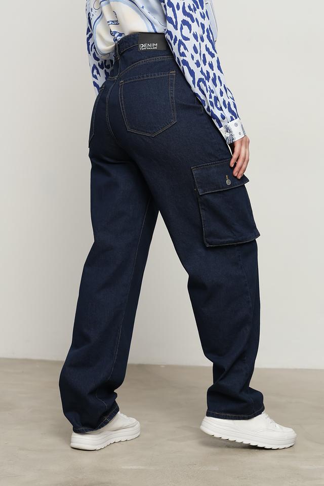 Джинсы имеют свободный крой и широкие штанины, обеспечивающие максимальный комфорт в течение дня. Высокая посадка подчеркивает талию и визуально удлиняет ноги. Наличие накладных карманов не только добавляет практичности, но и является ярким акцентом в дизайне.