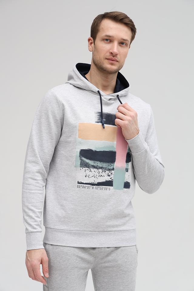 Мужская толстовка Tom Tailor серого цвета с ярким геометрическим принтом. Модель выполнена из мягкого хлопка с добавлением вискозы для комфорта и удобства в носке. Состав: хлопок 97%, вискоза 3%
