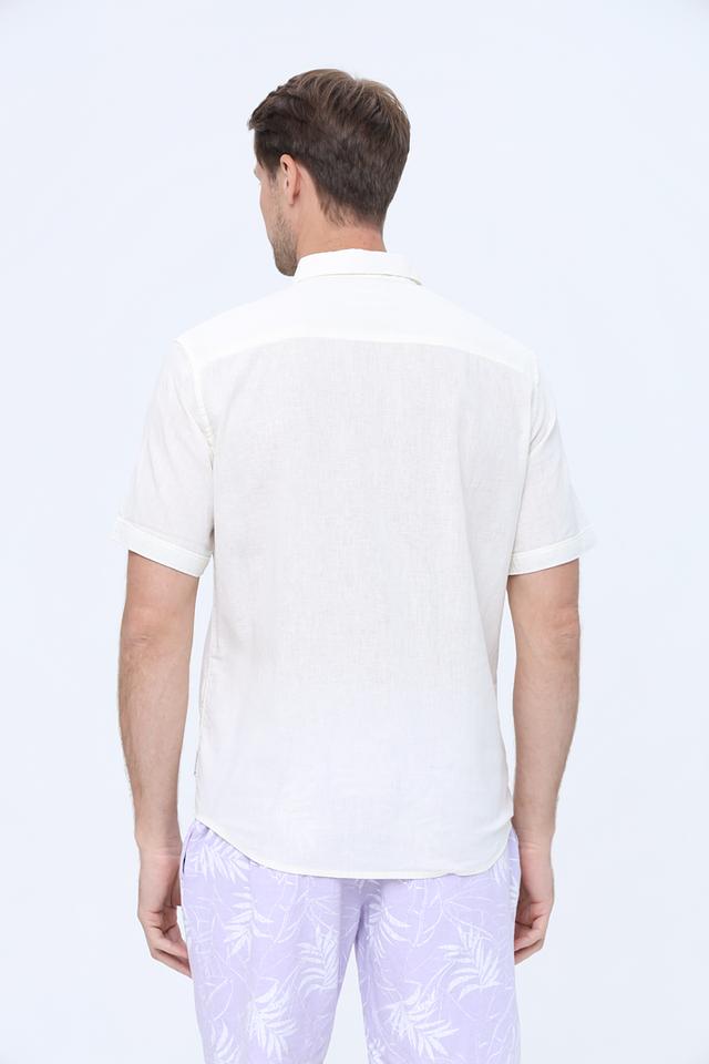 Состав ткани: 55% лён, 45% хлопок. Лён обеспечивает отличную воздухопроницаемость и прохладу, а хлопок – мягкость и комфорт. Эта рубашка идеально подходит для жарких летних дней.