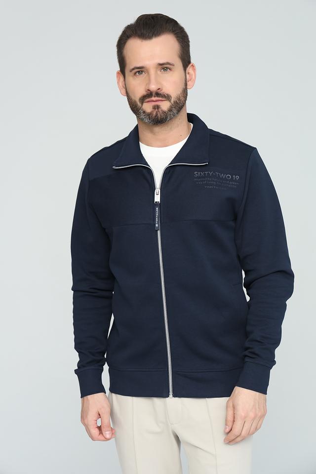 Мужской кардиган Tom Tailor темно-синего цвета на молнии с декоративной надписью. Изготовлен из мягкого хлопка с добавлением полиэстера для комфорта и долговечности. Отличный выбор для создания стильного повседневного образа. Состав: хлопок 80%, полиэстер 20%