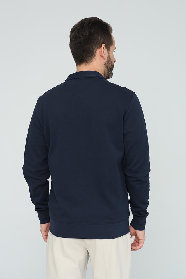 Мужской кардиган от бренда Tom Tailor выполнен в классическом темно-синем цвете. Модель застегивается на молнию, имеет воротник-стойку и длинные рукава.