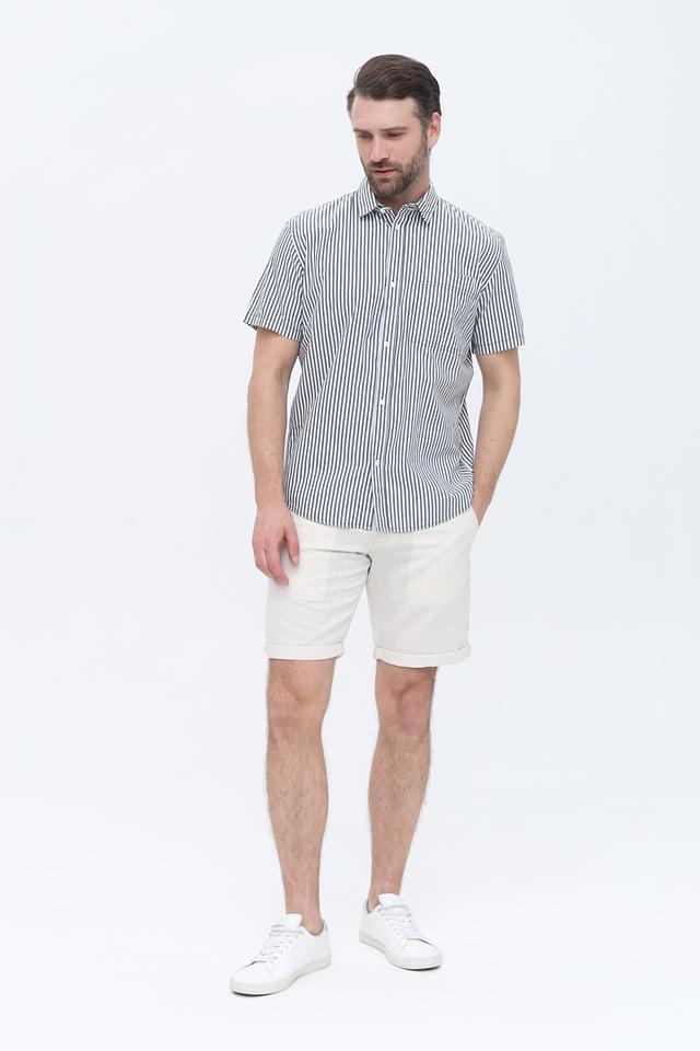 Рубашка имеет прямой крой, короткие рукава и классический воротник. Изготовлена из 100% хлопка, что обеспечивает максимальный комфорт в жаркую погоду. Ткань приятна на ощупь и хорошо пропускает воздух.