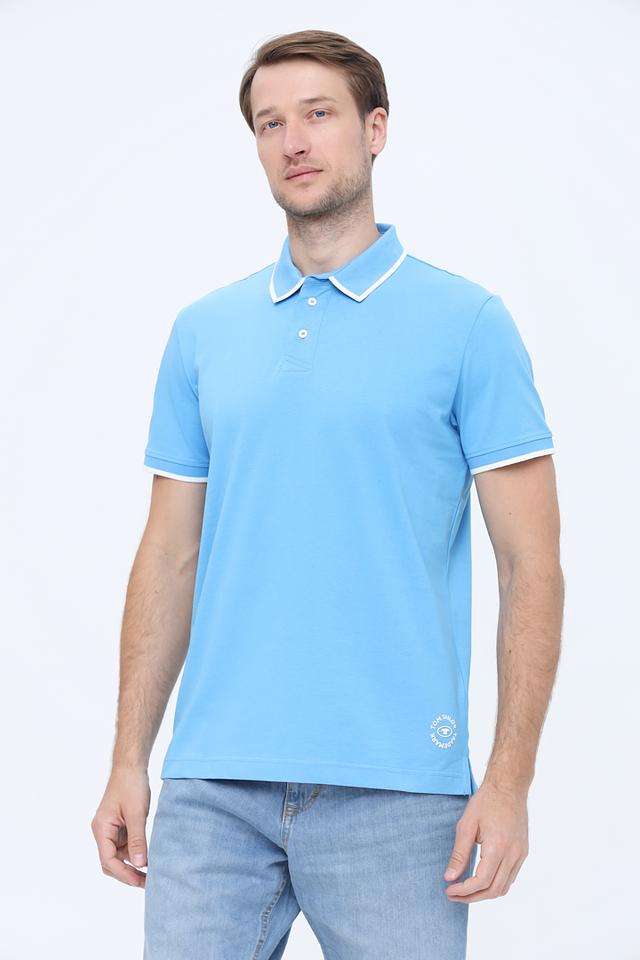 Голубое поло от Tom Tailor с коротким рукавом и белой отделкой на воротнике и рукавах. Изготовлено из 100% хлопка, обеспечивающего комфорт и воздухопроницаемость. Состав: хлопок 100%