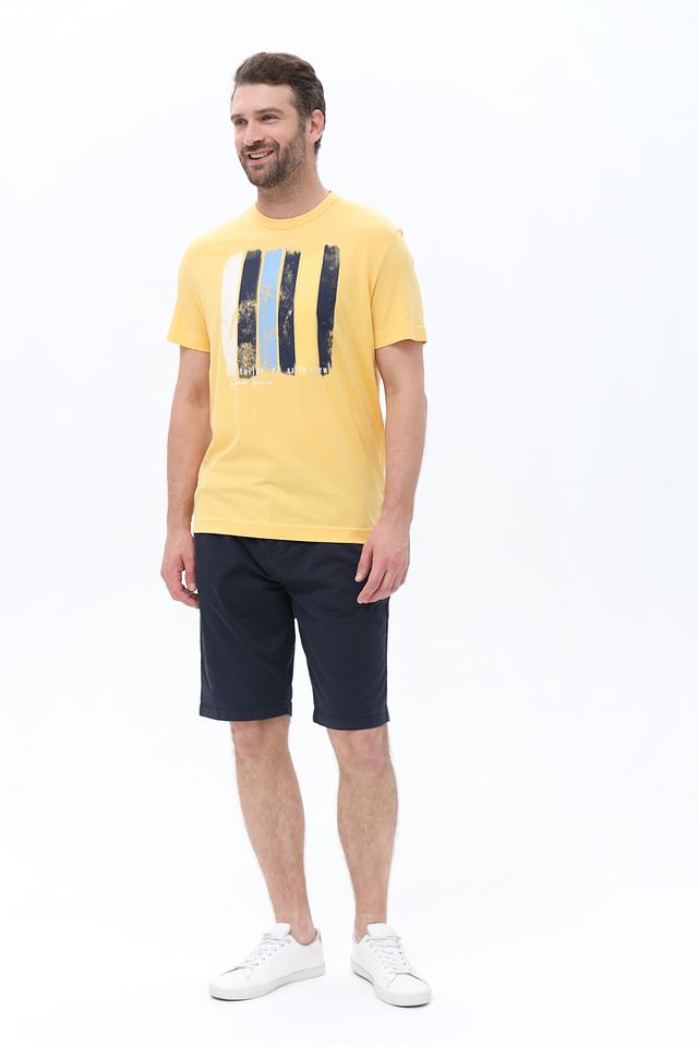 Жёлтая футболка Tom Tailor с ярким полосатым принтом. Классический крой и 100% хлопковая ткань обеспечивают комфорт и удобство в повседневной носке. Стильный и практичный выбор для летнего гардероба. Состав: хлопок 100%