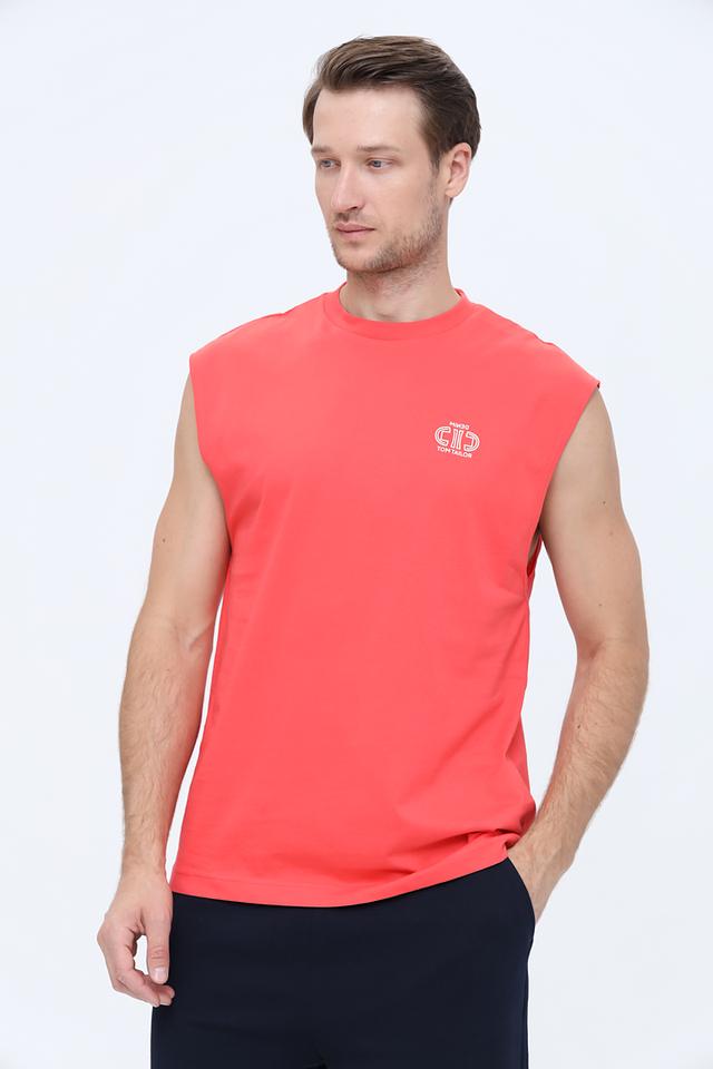 Футболка Tom Tailor без рукавов кораллового цвета с принтом