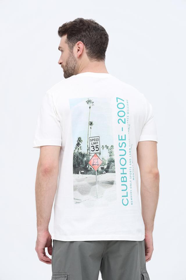 Футболка имеет классический прямой крой, который подходит для любой фигуры. Короткие рукава делают ее идеальным выбором для теплой погоды. На передней части футболки расположен небольшой логотип бренда, а на спине – яркий графический принт с изображением пальм и дорожного знака, добавляющий образу оригинальности.