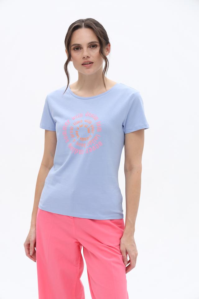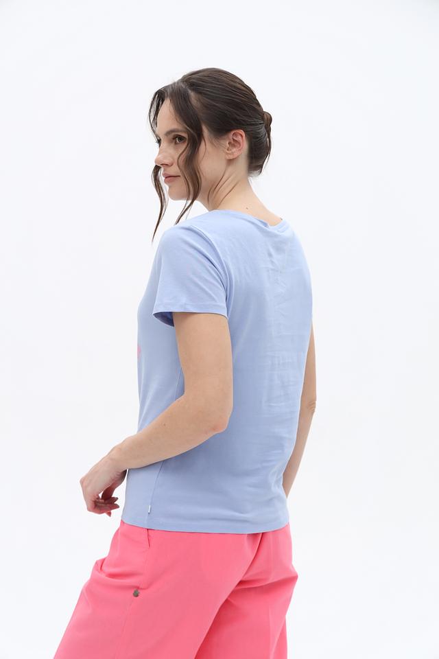 Женская футболка Tom Tailor denim girl лавандового цвета с круглым вырезом и принтом. Изготовлена из 100% хлопка, обеспечивающего комфорт и воздухопроницаемость. Стильный и универсальный вариант для повседневного образа. Состав: хлопок 100%